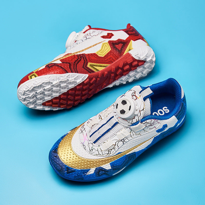 Innovative Rotary Dial Lacing System No more loose laces or tripping hazards mid-game. The advanced rotary buckle technology allows kids to achieve a secure, customized fit in seconds. Simply push, turn, and play. It’s the ultimate convenience for both parents and young players.
