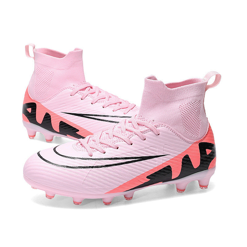 Elevate your game with these professional-grade high top soccer cleats designed for maximum performance on artificial grass (AG) and firm ground. Featuring a supportive high-ankle collar, these football boots provide exceptional stability and a locked-in feel during intense matches and training sessions. The durable AG long spike configuration ensures superior traction and explosive acceleration, while the lightweight, breathable upper offers a precision touch for better ball control. Available in a variety of vibrant colors, these versatile sports shoes are engineered for both male and female athletes, from competitive teenagers to active adults. Whether you are practicing drills or playing in a championship game, these cleats deliver the comfort and grip you need to dominate the field.